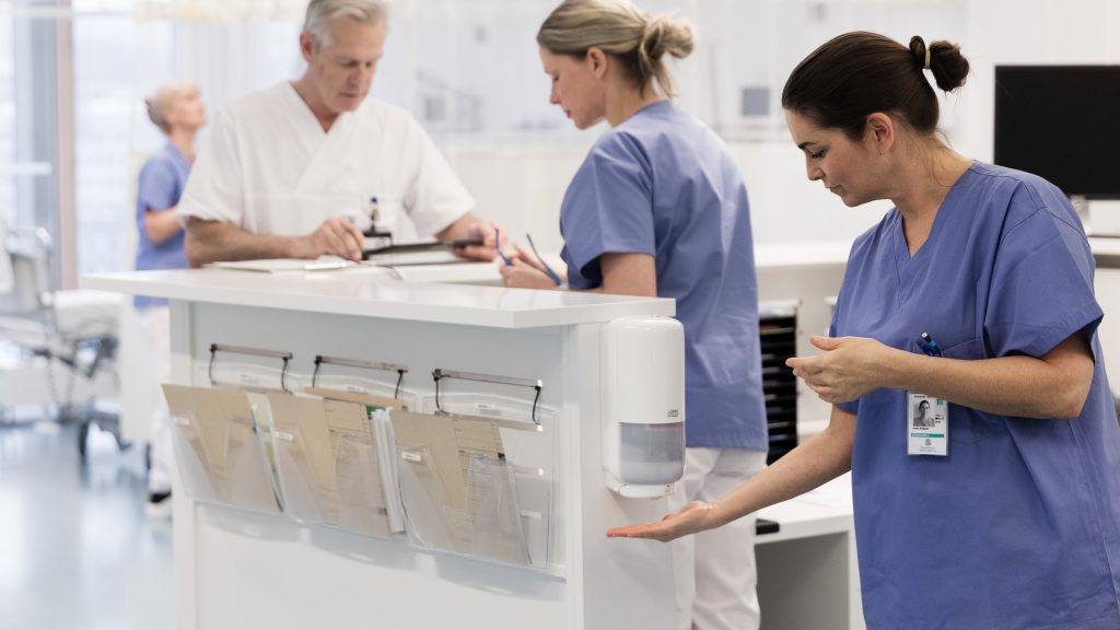 W szpitalach i innych placówkach świadczących opiekę, utrzymanie higieny rąk bywa trudne. Badania pokazują, że wielu pracowników ochrony zdrowia przestrzega właściwej higieny rąk przez mniej niż połowę zalecanego czasu, co i tak oznacza dezynfekcję średnio 100–150 razy w ciągu 12-godzinnej zmiany, w zależności od liczby pacjentów i intensywności opieki [1]. Wyniki badania przeprowadzonego dla Tork udowadniają, że personel medyczny chce mieć dostęp do wiedzy i szkoleń w tym zakresie, a około 80% profesjonalistów widzi potrzebę poprawy higieny rąk w pracy [2].